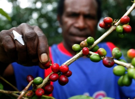 Производство кофе в Папуа — Новой Гвинее составляет менее 1 % мирового.Однако кофе является второй по значению экспортной культурой в стране, в этой отрасли заняты около 2,5 млн человек. Основной район производства — провинция Истерн-Хайлендс (Восточное Нагорье), в основном распространены мелкие хозяйства, имеющие 20 и менее деревьев.По некоторым данным, опыты с выращиванием кофе на Новой Гвинее предпринимались ещё в 1890-е гг.. Тем не менее, коммерческие кофейные плантации были заложены только в 1926 году, на юго-востоке страны. 18 плантаций дали урожай в 1928 году, это был кофе сорта Jamaican Blue Mountain .Конкурентоспособным новогвинейский кофе стал в 1960-е гг., чему способствовало развитие инфраструктуры, а также истощение почв на кофейных плантациях Бразилии, и гибель половины бразильских кофейных деревьев в заморозки 1975 года. Однако в 1980-е гг. производство резко сократилось: после децентрализации плантаций более 80 % производства стало приходиться на мелкие фермерские хозяйства, появились и болезни кофейных деревьев, отсутствовавшие ранее.